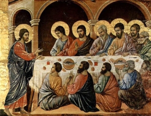 Je peux aussi imaginer la scène : Jésus, à table avec les 12 au soir de sa Passion, dans la salle haute… et qui se met à prier son Père.