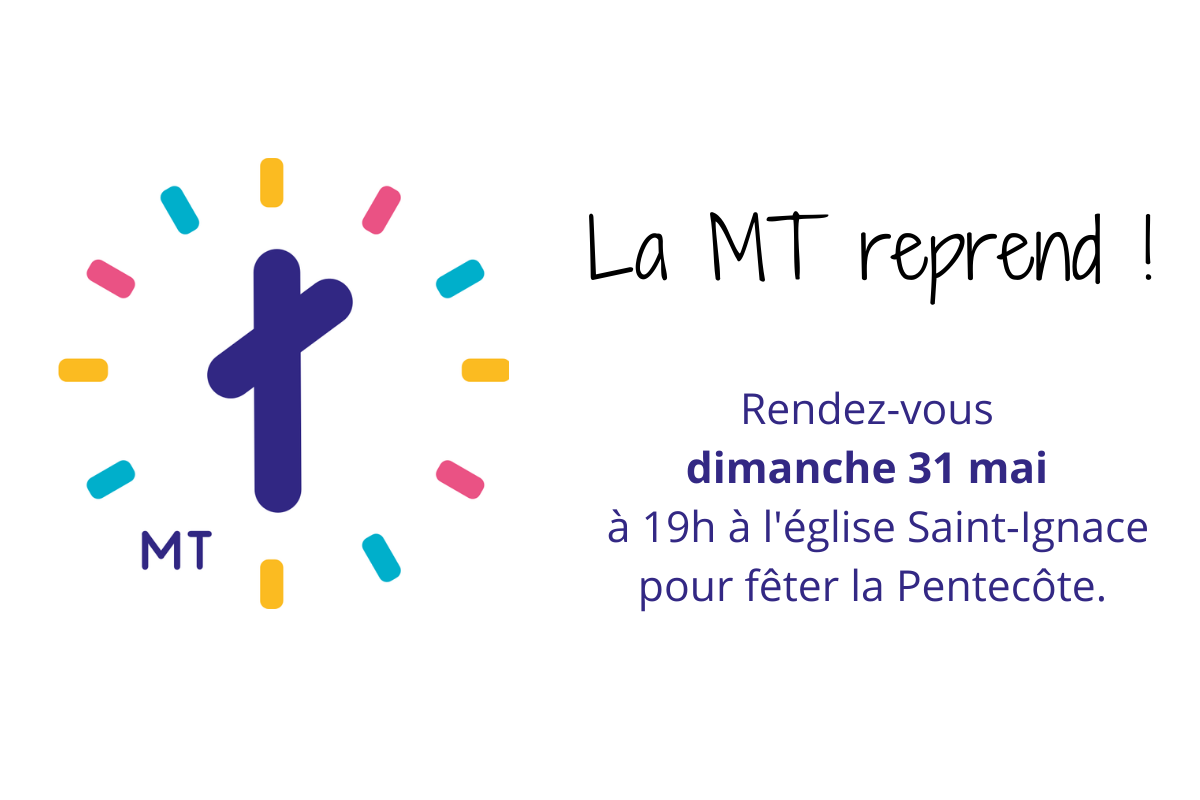 Nous vous donnons rendez-vous le dimanche 31 mai à 19h à l’église Saint-Ignace pour la reprise de la Messe qui prend son Temps. Un baptême sera célébré, la messe durera donc un peu plus longtemps qu’à l’habitude.