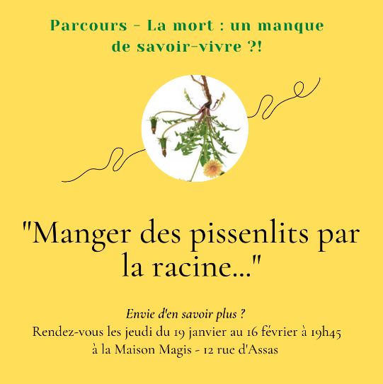 Dates exactes ci-contre, dans la cuisine de la Maison Magis (entrée en face de la cour), de 19h30 à 22h.