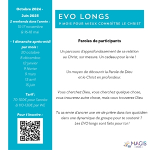 Les inscriptions sont closes pour cette année. A défaut, rendez-vous pour les EVO courts d’automne ou de printemps, ou pour une autre proposition du réseau Magis.