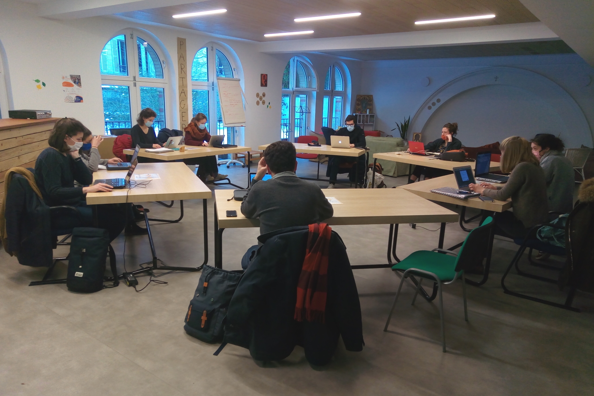 - Une salle de travail à disposition du lundi au vendredi de 9h30 à 18h. Chacun vient y travailler quand il le souhaite.