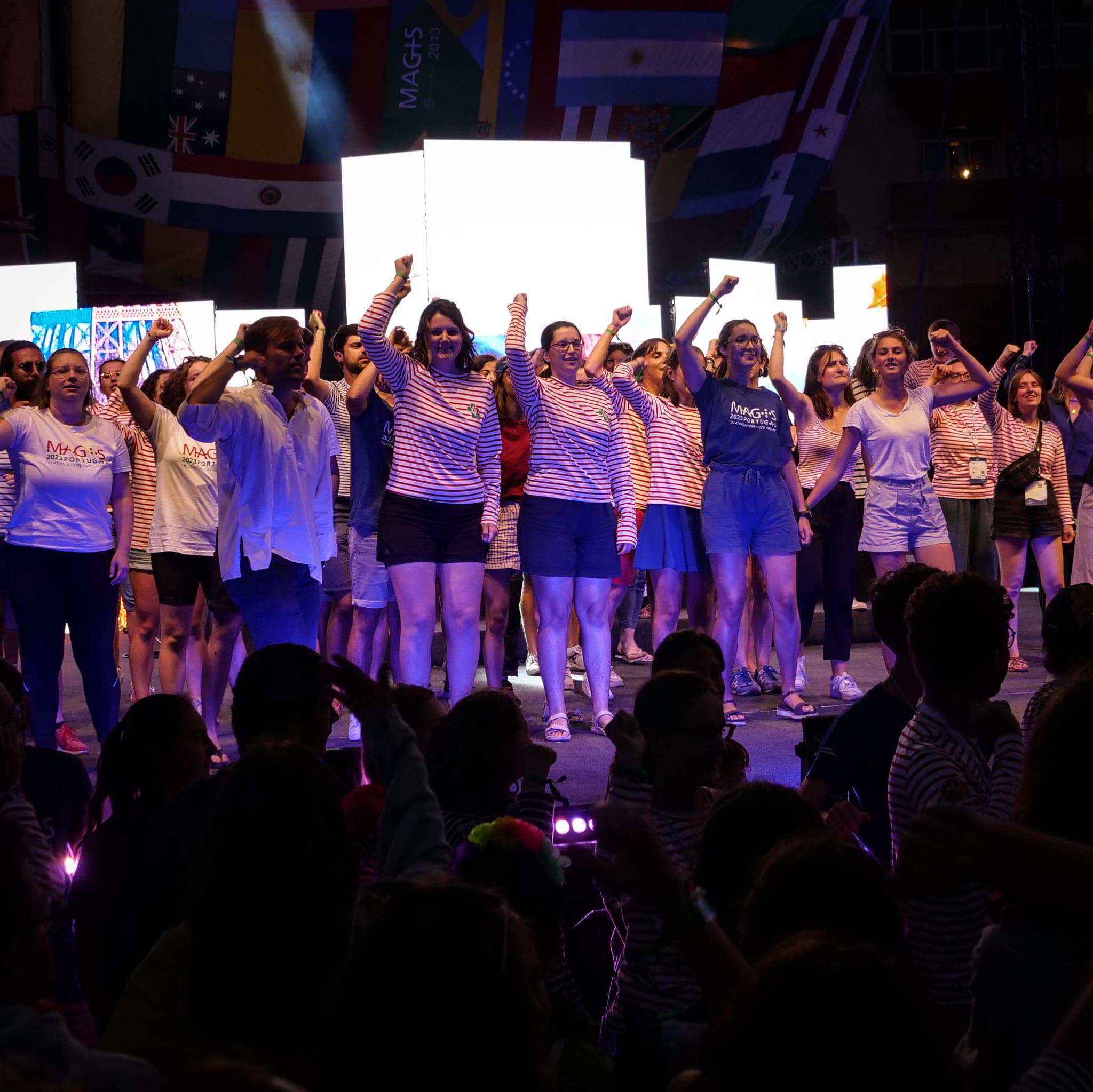 Cet été, un événement « catho » a animé les réseaux sociaux : les Journées Mondiales de la Jeunesse (JMJ). Du 1er au 6 août 2023, elles ont rassemblé à Lisbonne, autour du pape François, plus d’1,5 million de participants venus du monde entier ! Plus de 40 000 français dont 400 avec MAGIS. Le Réseau MAGIS proposait 2 manières d’y participer :