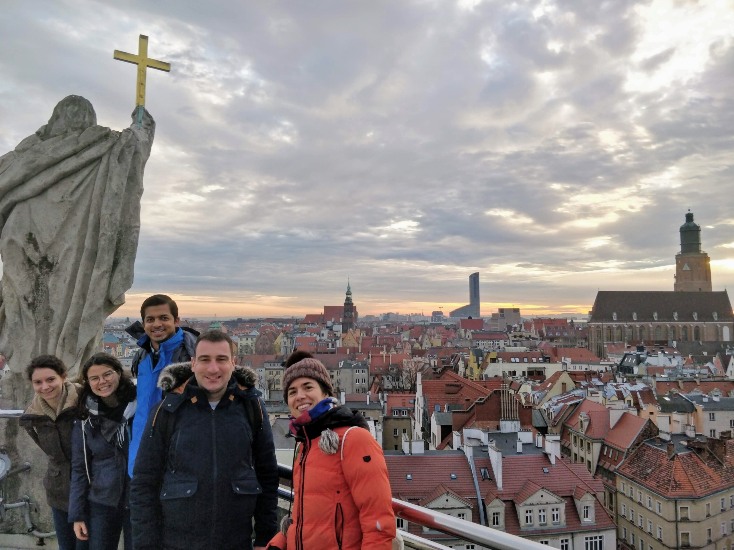 Cette année, 12 jeunes ont décidé de vivre ce nouvel an autrement avec Magis Paris. Certains connaissaient déjà bien la Maison Magis, d’autres n’y étaient encore jamais allés. Nous avons fait le trajet en bus avec de nombreux jeunes de Paris (15 bonnes heures de convivialité). Sur place, nous avions chaque matin une messe, une prière de Taizé et un temps de partage en petits groupes dans la paroisse qui nous recevait. Parmi la soixantaine de jeunes dans notre paroisse, outre les Polonais, des Croates, Ukrainiens et Espagnols étaient notamment présents. Le reste de la journée, nous étions à Wrocław pour pique-niquer, participer à des prières de Taizé dans les différentes églises de la ville, assister aux nombreuses propositions d’ateliers et conférences, et en profiter pour visiter cette très belle ville. Nous avons notamment pu admirer la ville avec ses toits rouges, ses nombreuses églises et son fleuve à multiples branches depuis le toit de l’université construite par les jésuites au XVIIe siècle. Après le dîner chaud et le traditionnel thé de Taizé servi par les nombreux volontaires pour nous réchauffer, nous participions à la prière du soir dans l’immense salle du centre des congrès avant de retourner dans nos familles d’accueil (qui nous attendaient souvent avec encore des spécialités culinaires à goûter !).